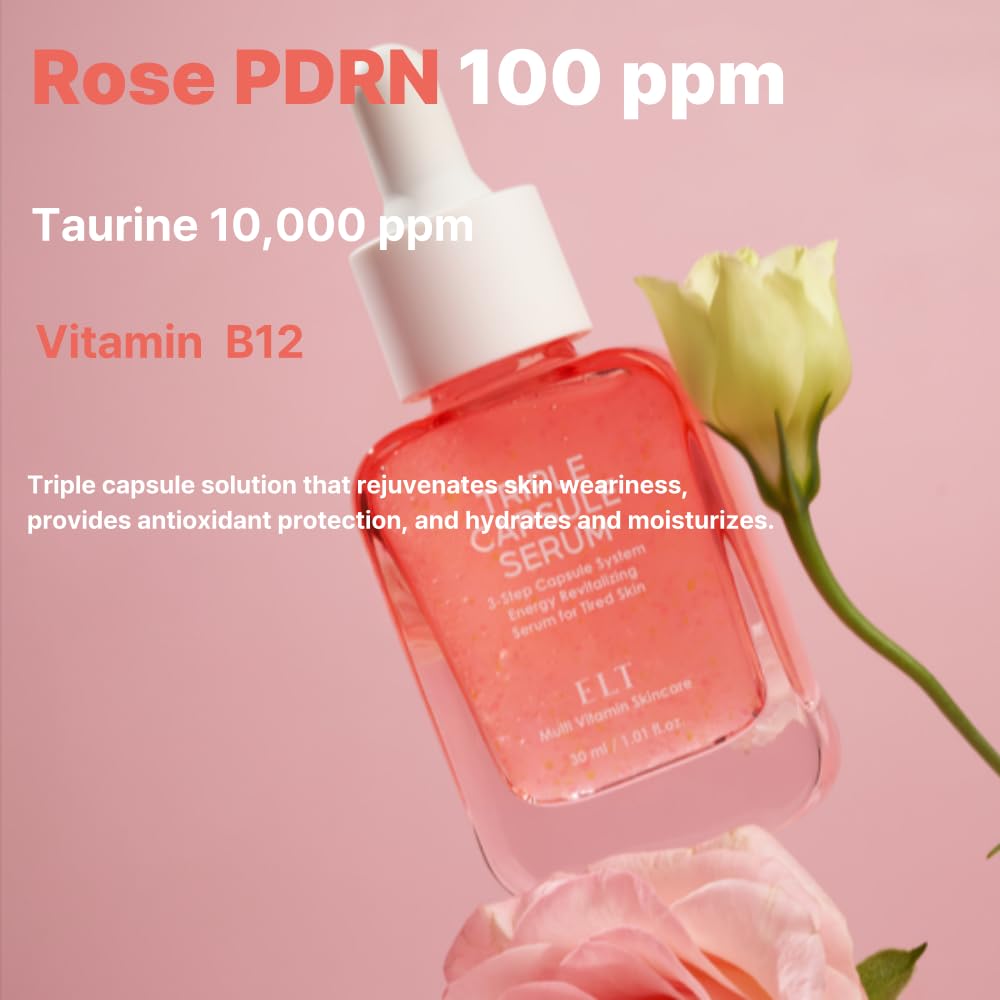 ELT 3-in-1 Triple Captuls Face Serum with Rose PDRN, Taurin, Niacinamide, Vitamin C & CoQ10, Hydrating & Moisturizing, Skin Restoration, Korean Skincare 30ml (1.01 FL.OZ.)